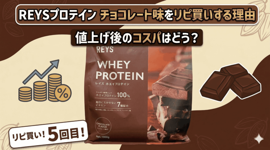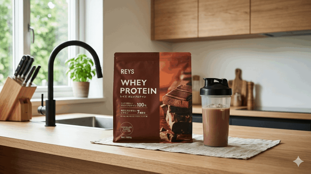 僕自身、これまでいくつかのプロテインを渡り歩いてきましたが、現在は「REYS(レイズ)プロテイン チョコレート味」をメインでリピートしています。